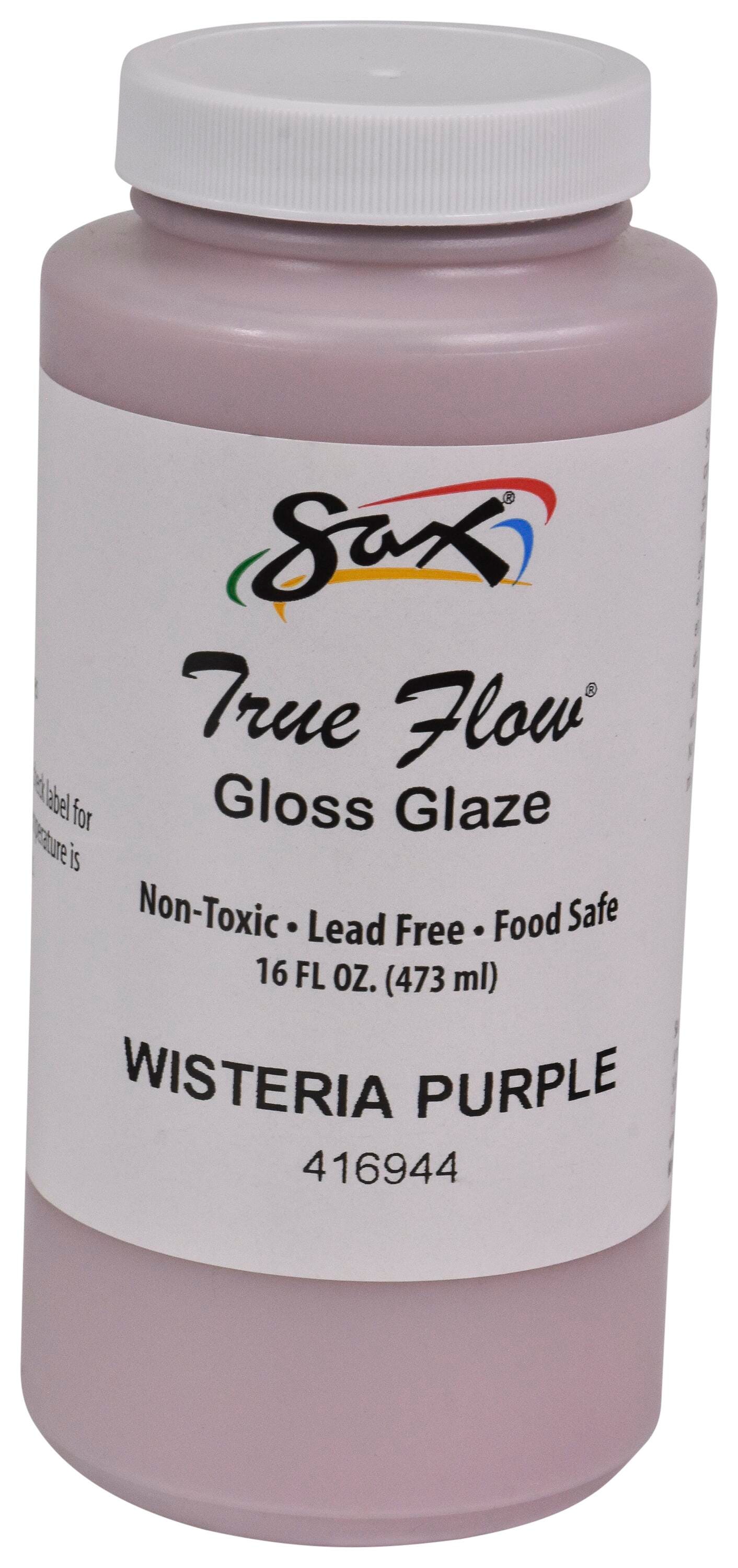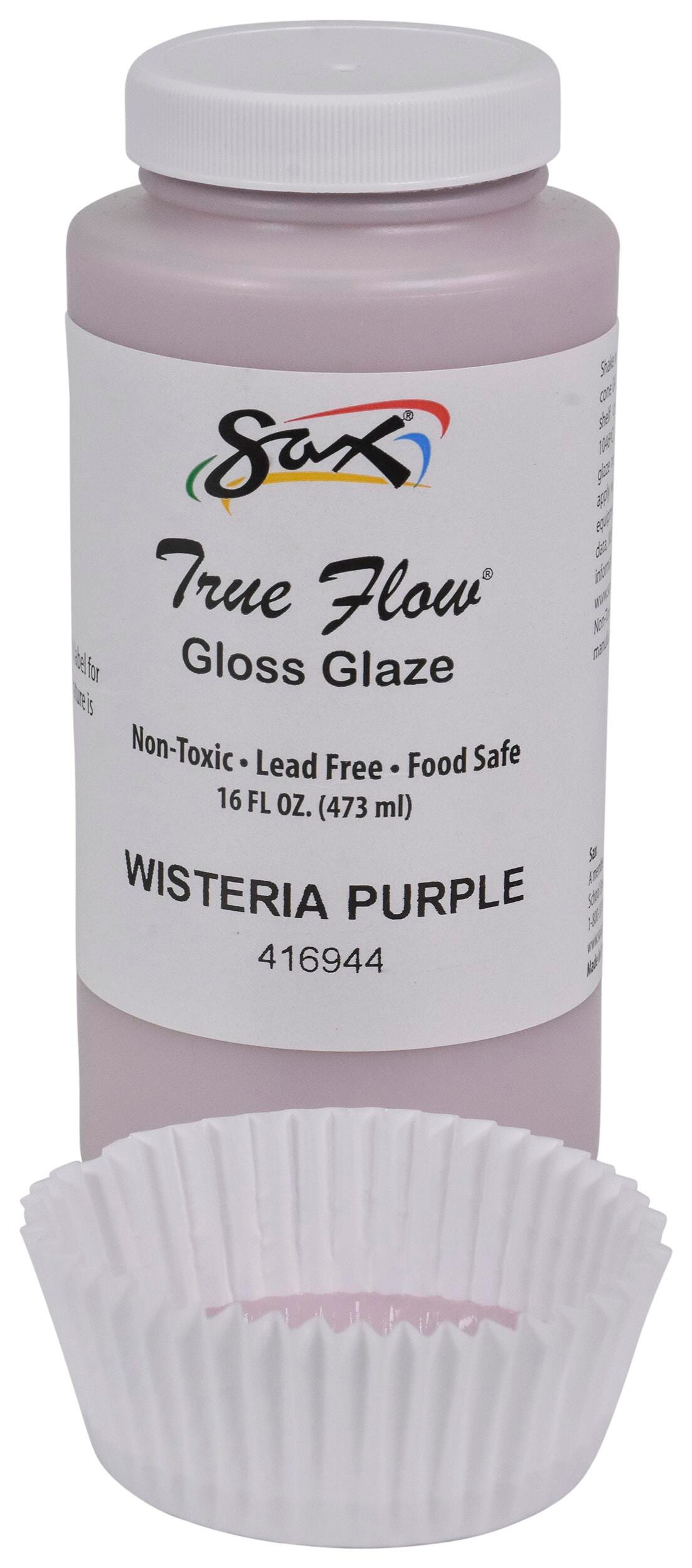 The Sax gloss glaze in opaque Wisteria Purple is a high-quality glazing paint that's dinnerware safe when fired to cone 06-05. During application, the glaze may be a different color and will change to the desired look after the required kiln firing. The color lightens when fired at cone 6.Features