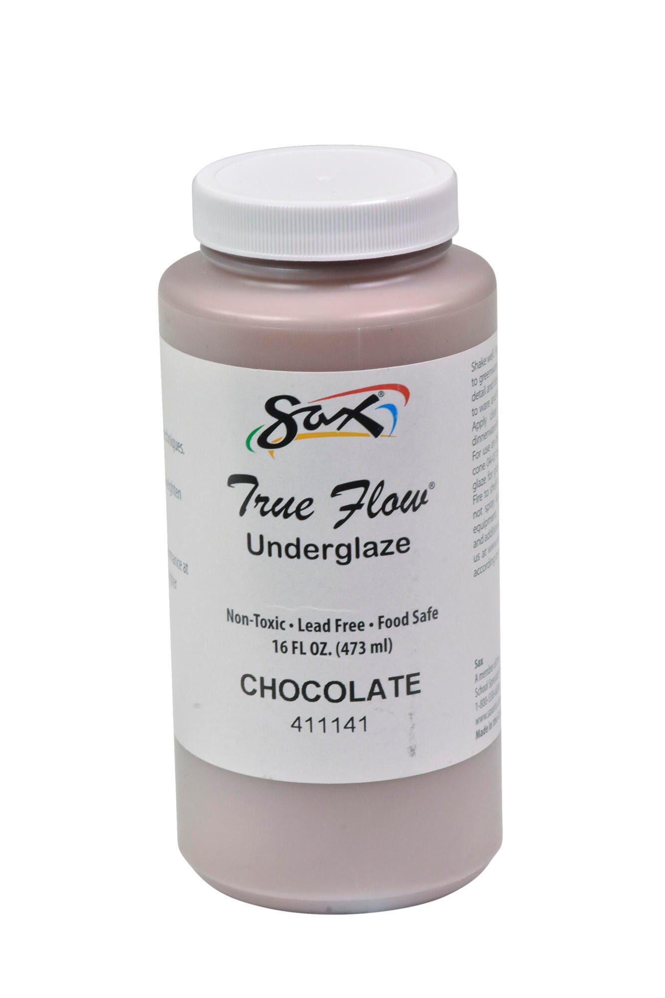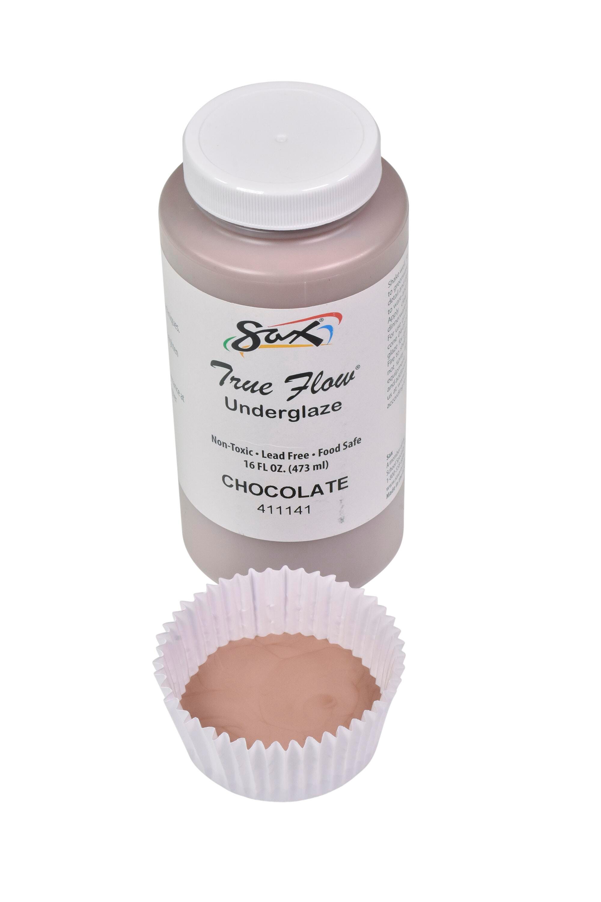 Sax Chocolate underglaze paint comes in a concentrated opaque liquid color. Decorate pottery with this glazing paint that's ready for use on clay, greenware, and bisque. The color may be a different shade during application and will change to the desired look after the required kiln firing. This painting medium's color lightens when fired at cone 6. Our high-quality underglaze has a matte look after firing and can be transformed to a shiny, rich glaze appearance with a transparent glaze coating on top.Features