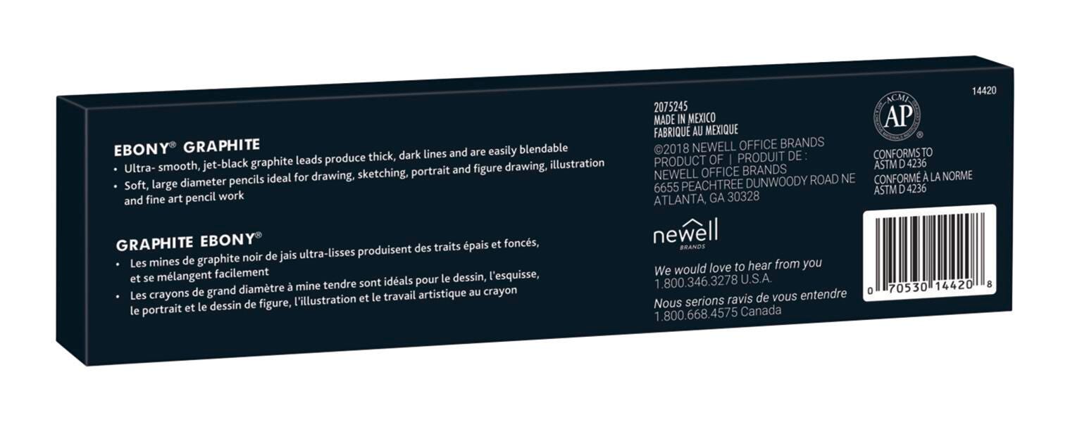 The Prismacolor Premier® Graphite Drawing Pencils deliver a smooth drawing experience and an exceptionally dark, jet black color. They feature extra-smooth graphite cores that are designed for sketching, portrait and figure drawing, and illustrations. These ebony pencils make intense lines that stand out, making them an essential element of any artist's tool box. This pack contains 12 ebony pencils.Features
