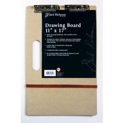 These heavy-duty drawing boards are just what every student needs. Designed for use in the studio or when painting outdoors. They can easily be carried by the convenient cut out handle. Sturdy spring loaded clips and a heavy-duty rubber band help to keep your artwork secure. 11 x 17 inches.Includes: