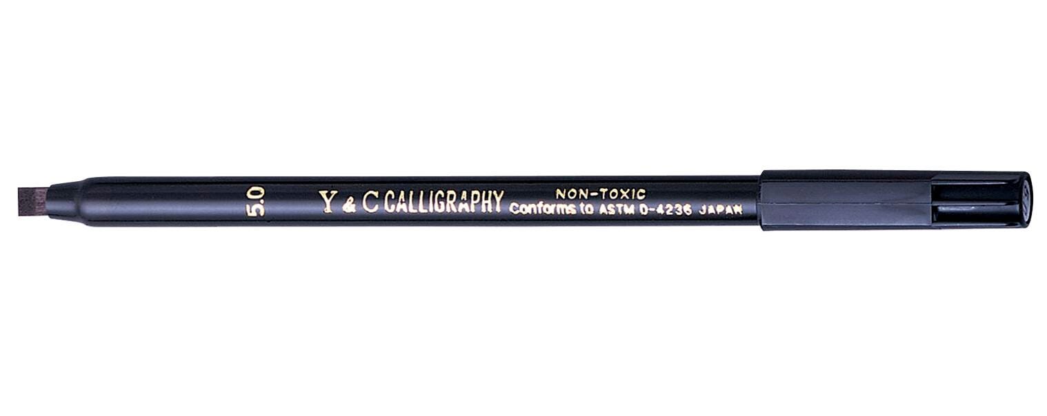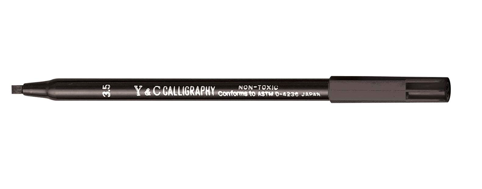Description The Yasutomo Y and C water-based Calligraphy Marker is ideal for scrolls, flourishes, serifs and alphabetic finery. Marker employing dense black, non-toxic ink flows generously and comes with unique mini-chiseled edge to render true calligraphic control. Great for doodling and drawing. Comes in sizes 2 mm, 3.5 mm, 5 mm. Non-permanent.Features Create gorgeous letter strokes for class, work or scrapbooking Transform ordinary letters into works of art Designed with pristine balance and chiseled tips for perfect control A great tool for experts and beginners