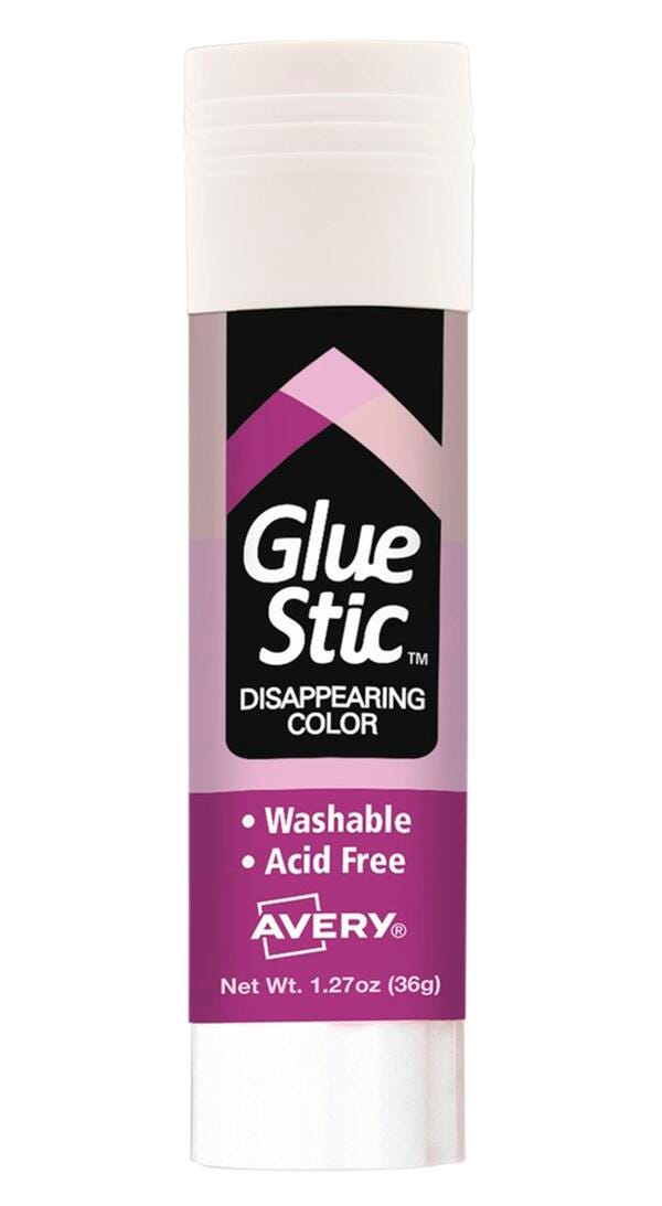 With an Avery Glue Stic with Disappearing Purple Color, you can securely fasten paper, cardboard, photographs and more. Just lift the cap and twist the base for smooth, easy application. The purple color lets you see where you've applied the glue but then dries clear. Great for crafting, scrap booking and other projects. The acid-free, nontoxic formula is safe for school, home and office, and the adhesive easily washes off hands and clothing. ACMI certified. Conforms to ASTM D 4236.
