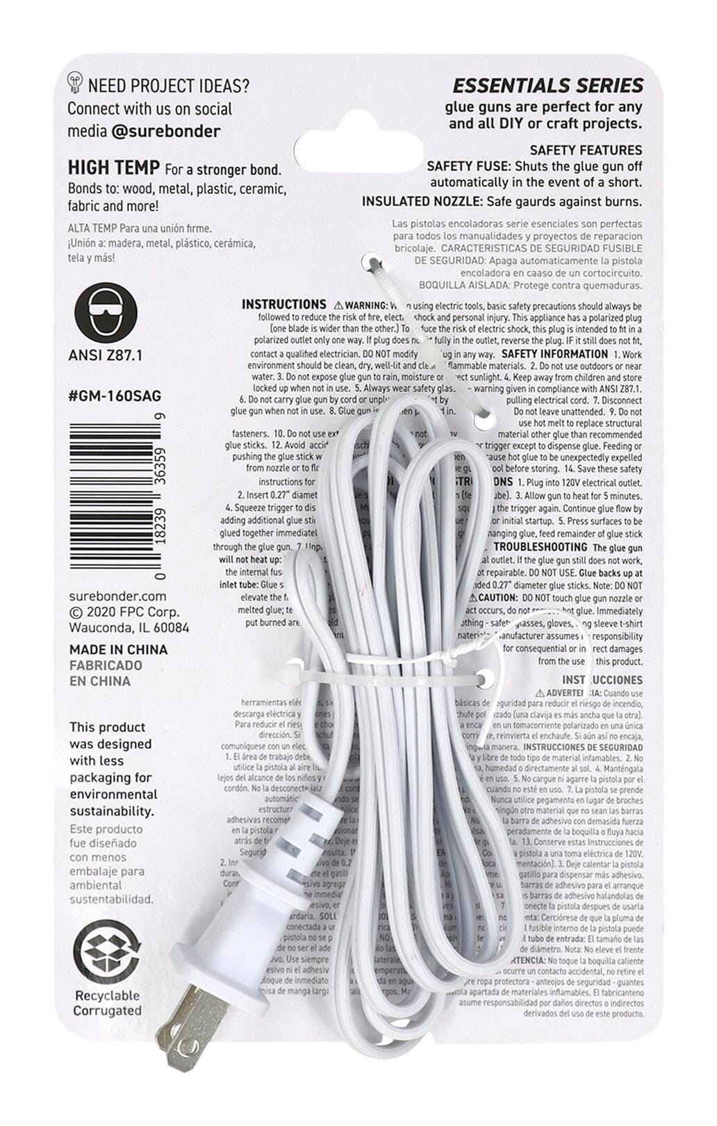 Surebonder is excited to bring you 5 new fresh color concepts, bold colors to match your personality, collect them all or choose your favorite, this is sage. A mini glue gun that is ideal for crafts, floral, and do it yourself projects that will even look great in your classroom. Plug in cord for power and unplug immediately after use. Insert glue stick into the chamber, pull the trigger to advance glue.