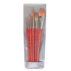 Princeton Golden Taklon Short Handle Paint Brush Set is designed to use in classrooms and is made up of hardwood handles with seamless ferrules. Brushes with synthetic hairs or natural bristles is perfect to use with watercolors, acrylics or fabric paints. Set of 6 contains 1, 6, 12 round, 3/4 in wash/glaze, 1/2 in angle shader, 2 liner and comes with a brush case.