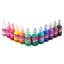 Puffy paint value packs have a variety of popular color combinations that will take your creative projects to new dimensions. Paints come in an easy grip bottle and have a fine point tip applicator.