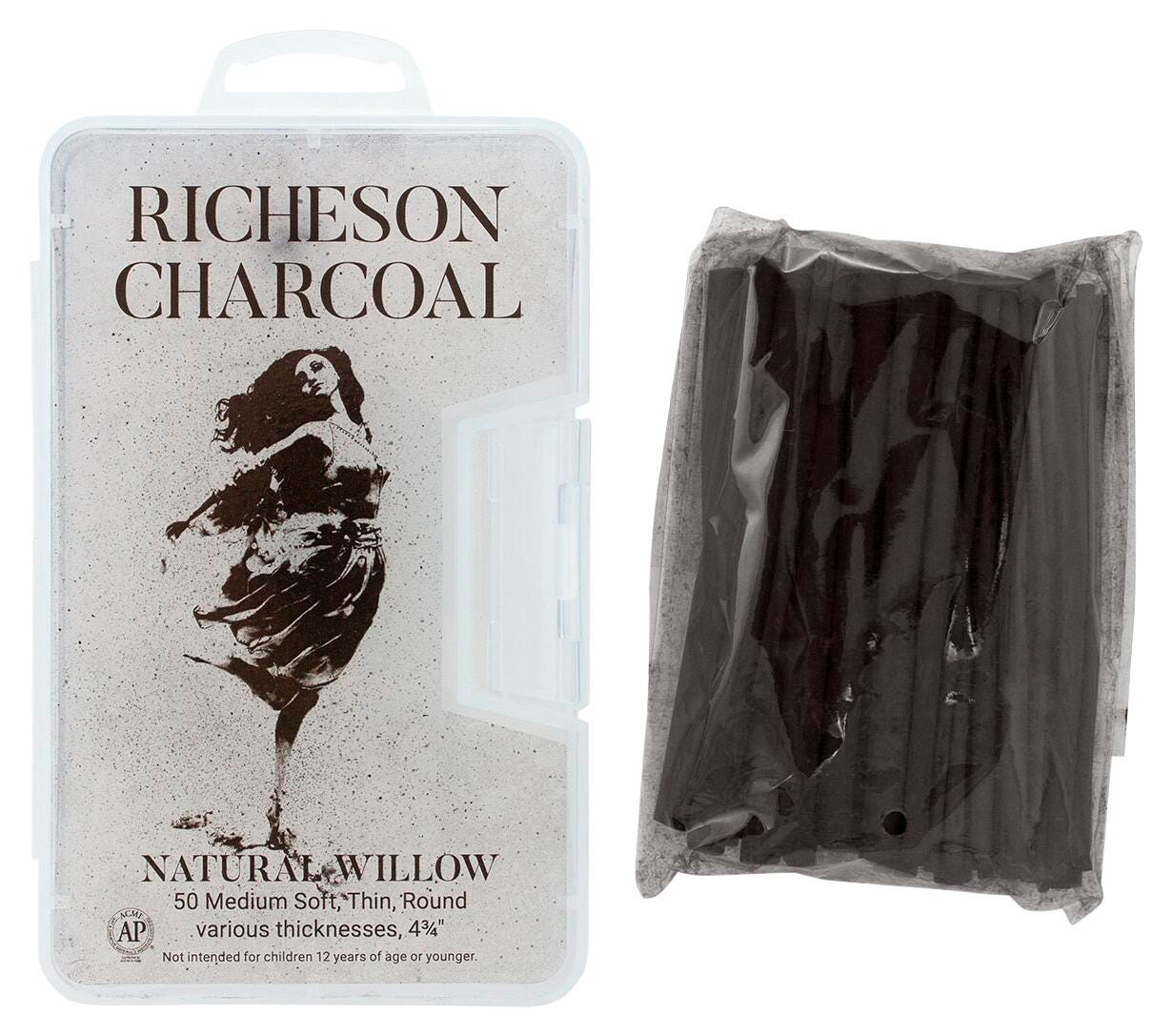 Description Richeson in Natural Willow Black Charcoal Stick is non-toxic, medium soft, thin and round. Charcoal stick has superior quality. Stick is sold as 50 per pack and comes in a protective plastic case.