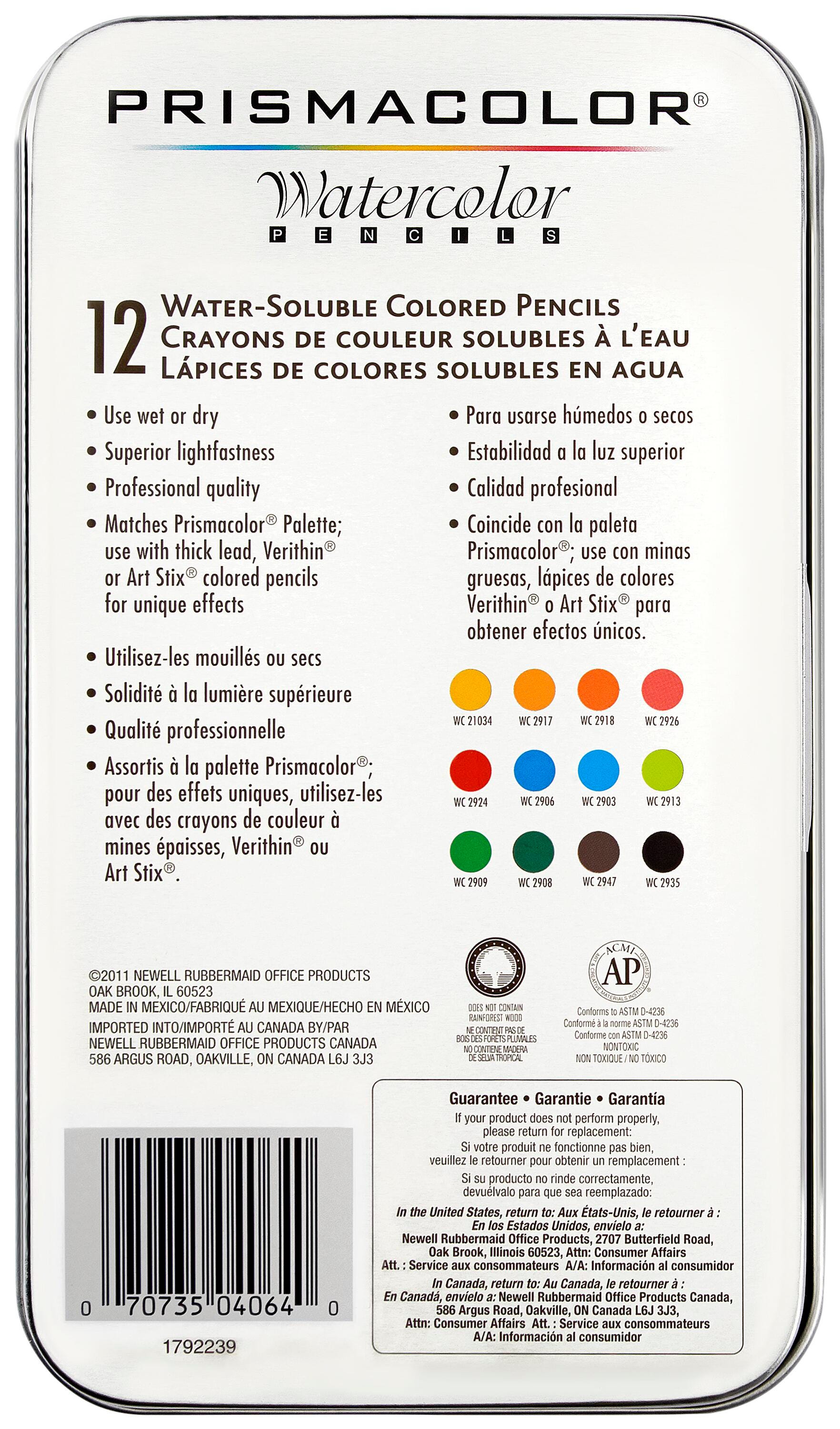 Prismacolor Premier Water Soluble Watercolor Pencils, Assorted Colors, Set of 12