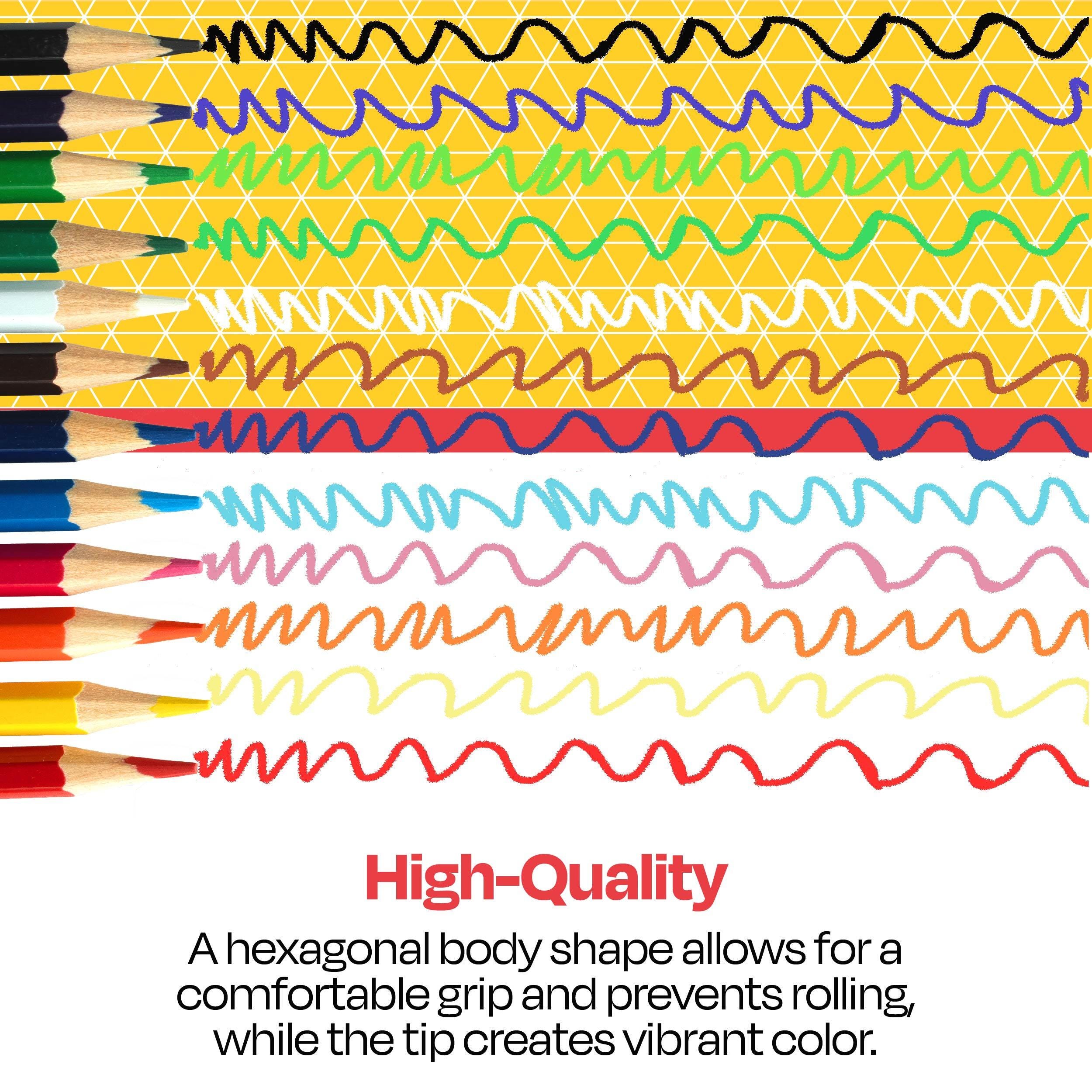 Description Liven up classroom creative projects with classic colored pencils from School Smart. This 24 pack of colored pencils includes vivid assorted colors. The coloring pencils for kids and adults are pre-sharpened and lie down smooth color. Additionally, the hexagonal-shaped pencil body is easy to handle and sharpen. Each pencil measures approximately 7 inches and has a lead pencil tip of 3-3/10 millimeters.Features Quality wood construction of the professional colored pencils stands up to rigorous coloring and sketching use for art class drawing and coloring Hexagonal shape of the pencils is perfect for kids or adults Pencil shape allows the artist to have a more secure, comfortable grip and helps prevent the coloring pencils from rolling away Includes a storage box with separate compartments for each shade to provide easy organization The classroom colored pencil set is a fun and budget-friendly choice for schools, recreation centers, therapy groups, and mindfulness adult coloring sessions AP non-toxic; conforms to ASTM D-4236 Includes: Storage Box and 1 Pencil in Each Color: Red Vermilion Red Orange Pink Green Sap Green Light Green Orange Dark Yellow Yellow Burnt Umber Burnt Sienna Brown Terra-Cotta Magenta Purple Light Purple Blue Light Blue Gray Black White Blue-Violet Dark Blue