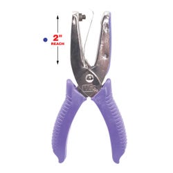 The McGill Punchline features a 3/16 inch round punch and is perfect for use with paper, cardstock, thin plastics, thin metals, craft ribbon, craft foam and more. The punch reaches 2 inches from the edge of your paper/material and features a removable plastic receptacle along with removable, washable cushioned grips for comfort. The punch shape is displayed on both sides of the comfort grips for easy identification.Features