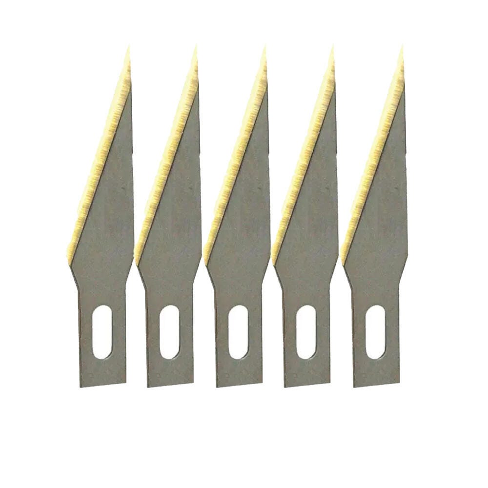 These X-ACTO Z Series Replacement Blades feature a coating of zirconium nitride, making it stronger and sharper for confident cutting. The extra-sharp and durable blades are sharpened at the atomic level to precisely cut through light-weight materials including paper, plastic, thin metal, cloth, and film. This pack includes 5 size 11 blades that are compatible with X-ACTO No. 1 kinves.Features