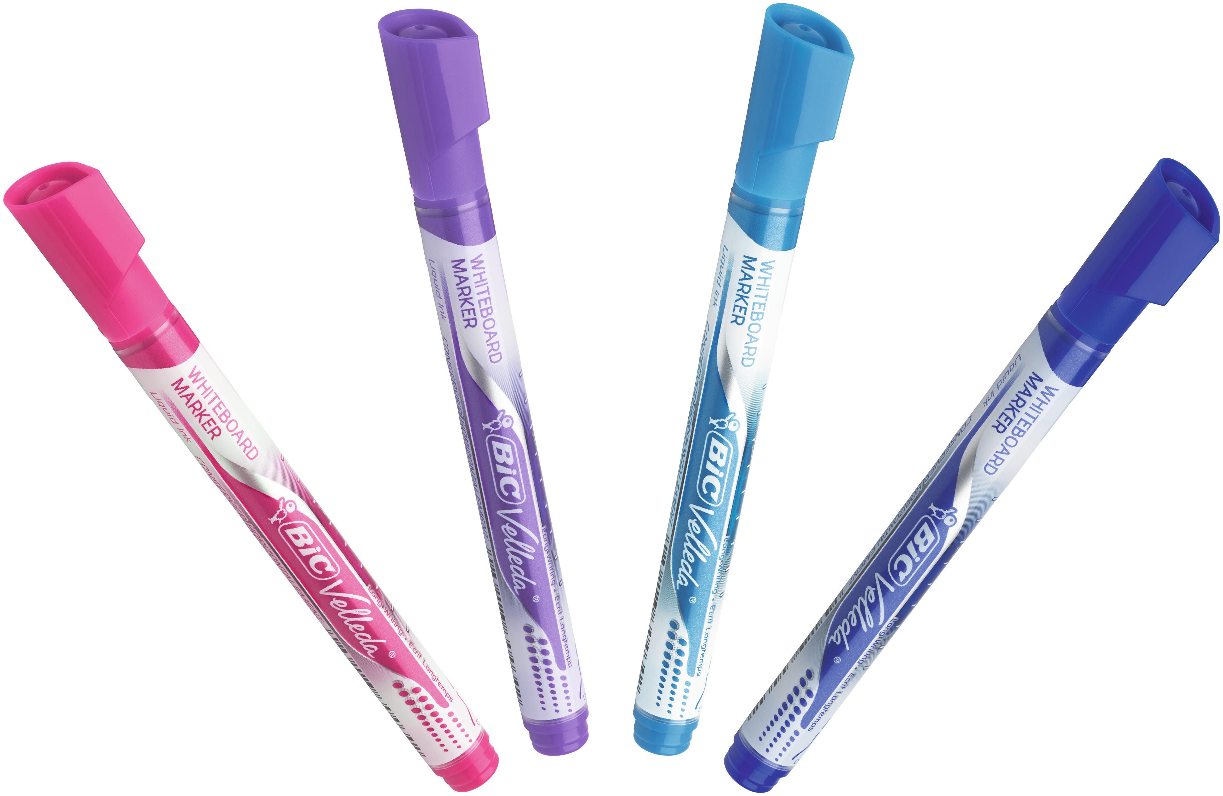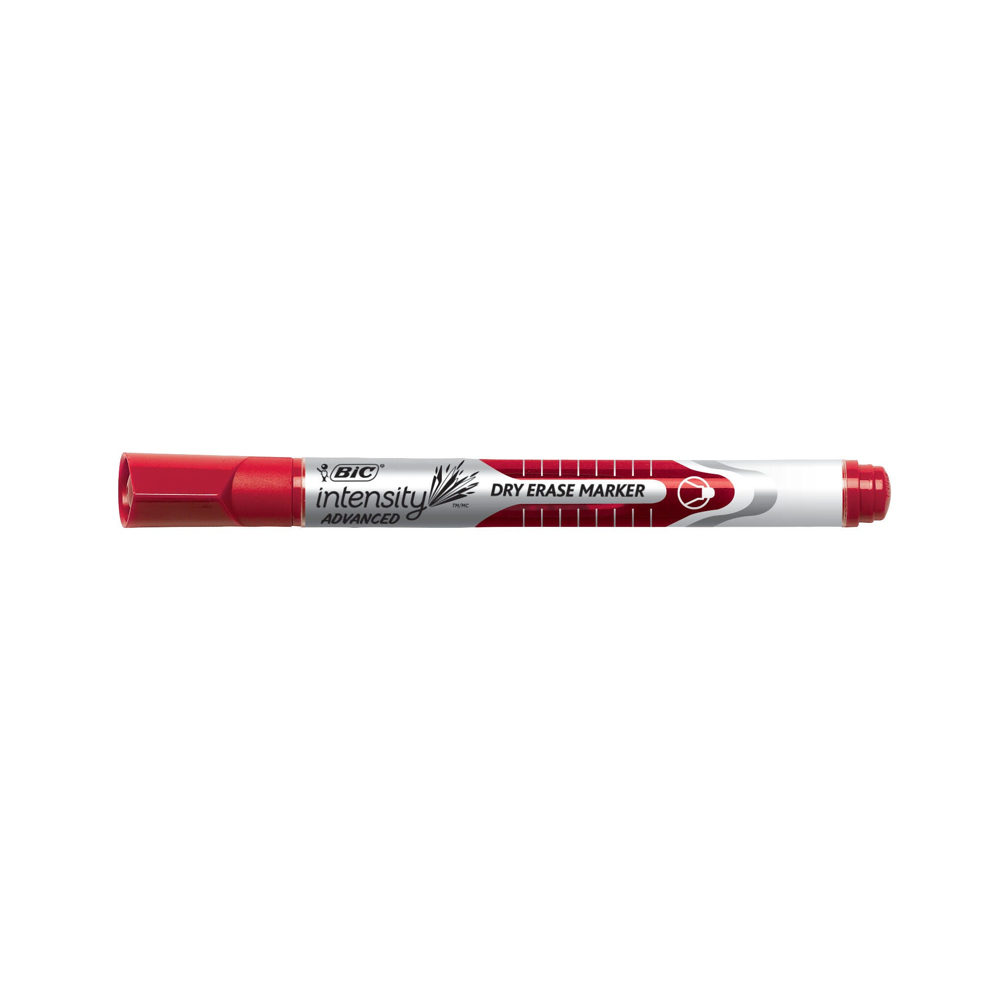 The BIC Intensity Advanced Dry-Erase Markers offer smooth writing and bold color that stands out on whiteboards. These slim markers deliver consistent ink flow for smooth and instant writing with a fine bullet tip that lays thin, precise lines. They have a specially designed angled cap that prevents rolling and long-lasting, low-order ink that is great in shared spaces. These premium dry-erase markers have better erasability than traditional alcohol ink markers to keep your non-porous surfaces looking neat and fresh. This set of 12 includes 2 markers in black and blue and 1 each of brown, red, green, orange, pink, purple, light blue, and light green.