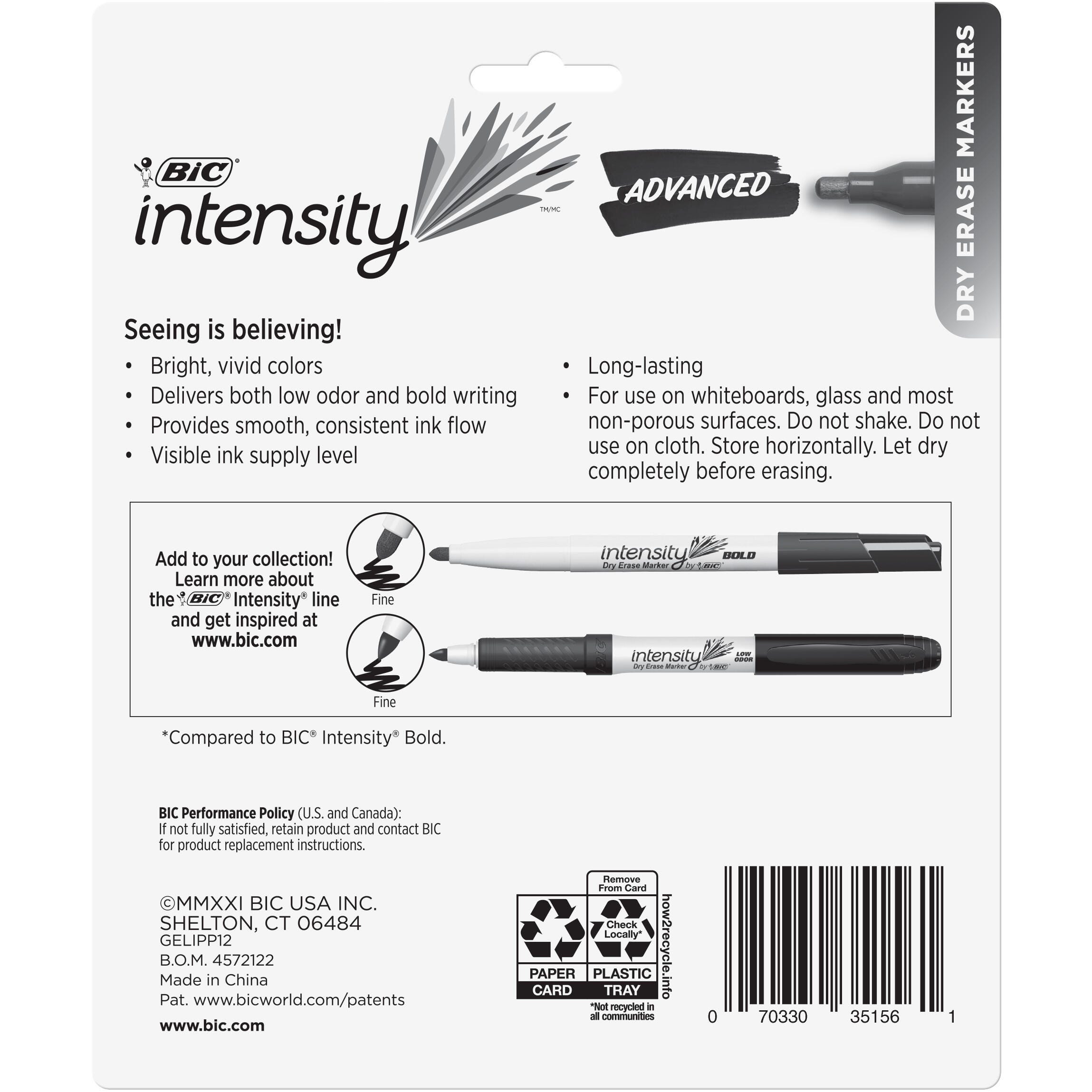 BIC Intensity Advanced Dry Erase Markers, Fine Bullet Tip, Assorted Colors, Set of 12