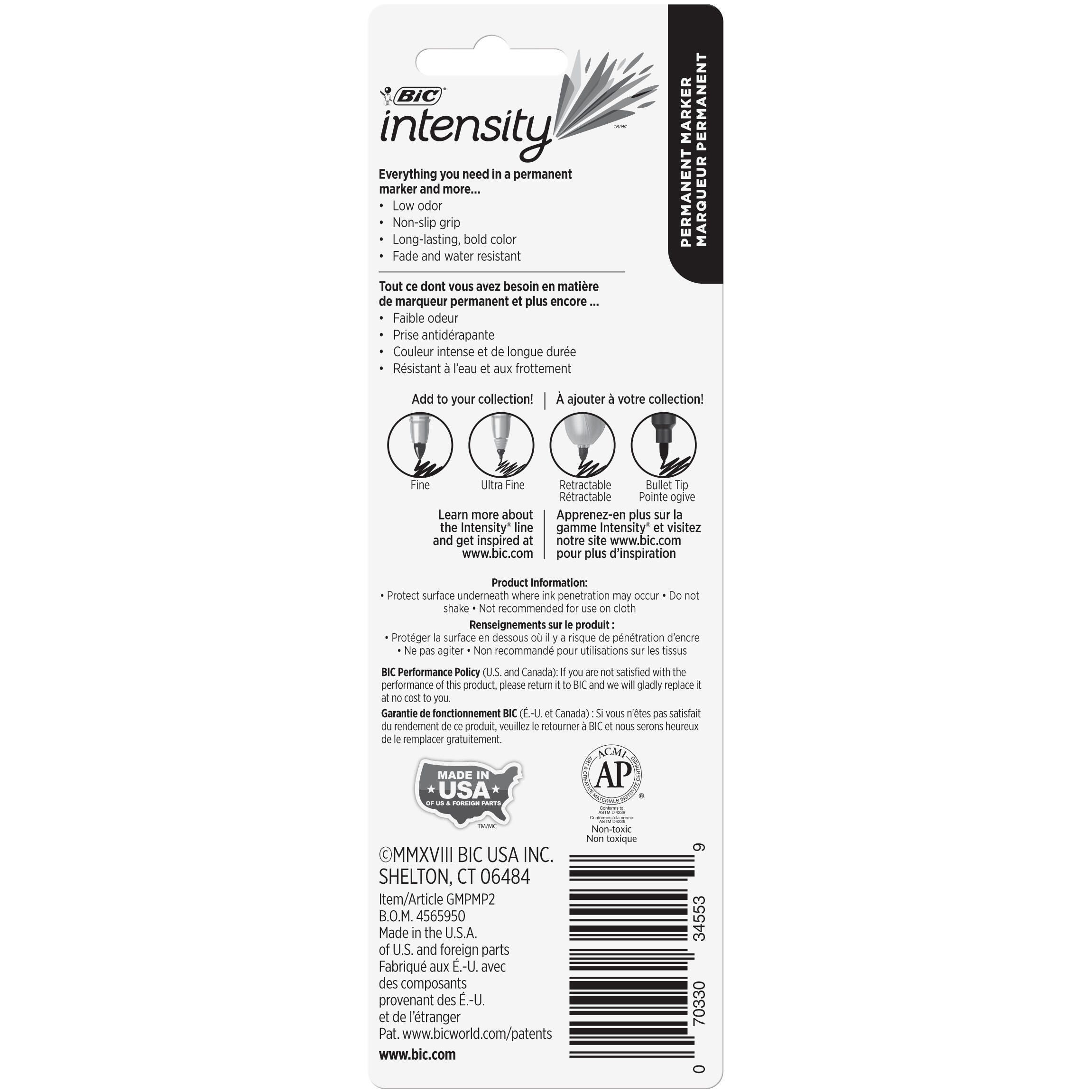 This pair of BIC Intensity Permanent Markers provides shimmering, permanent metallic ink for creative and DIY projects in the classroom, office, or home. A rugged conical tip with extended cap-off-time offers extra durability. The pen-style barrel and textured grip provide lasting comfort during longer projects. These fine point markers lay permanent marks on photos, glass, coated papers, plastic, and more for versatile use in a variety of projects. This set contains one gold and one silver marker.