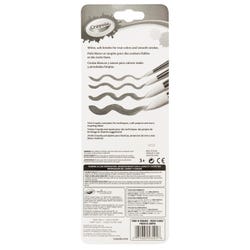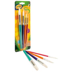 This Big Round Paintbrush Set from Crayola delivers the tools to make broad strokes or straight lines. Each brush helps artists create innovative, attractive art or craft projects like posters, signs, portraits, landscapes, and more. The brushes feature silver ferrules and vary from 1/2 inch in diameter descending to 1/8 inch. Each brush is equipped with a 4-3/4 inch colored metallic-effect wooden handle that is easy to hold and adds a stylish touch. The soft, white taklon bristles are great for use in a variety of mediums.Features
