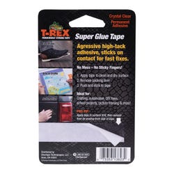 Make fast fixes and repairs with T-Rex Super Glue Tape. It features high-tack acrylic adhesive that sticks on contact. This double-sided super sticky tape is a great alternative to glue for mounting and automotive solutions, repairs requiring two surfaces to be adhered to each other, or craft projects. It provides aggressive adhesion on a variety of surfaces, including ceramic, concrete, glass, fabric, metal, plastic, tile, wood, and more.Features