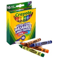 This set of Crayola Large Ultra-Clean Washable Crayons delivers big color and easy cleanup. Crayola Large Crayons are specially designed to be more comfortable for small hands and provide hours of colorful fun, with bold color, a smooth formula, and a durable construction. These crayons also feature a handy washable formula and Color Max technology to ensure the brightest, truest colors yet. Each large-size crayon measures 4 x 7/16 inches. This set contains 16 crayons in an assortment of classic Crayola colors.Features