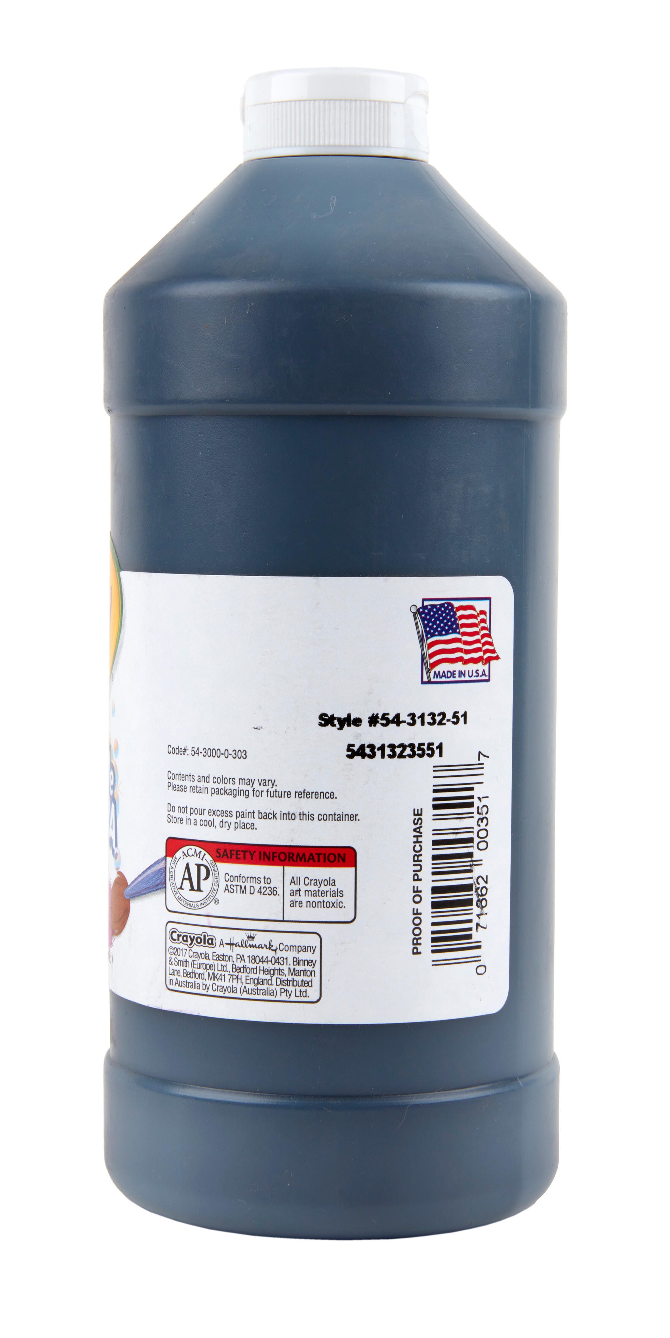Add a splash of color to art fun anywhere with Crayola Artistia II Washable Tempera Paint. The water-based paint has a creamy consistency that provides good opacity and maximum coverage over newspaper, cardboard, papier mache, traditional paper, and beyond. This rich black paint can be used on almost any surface, providing a versatile craft solution for class projects, at-home creativity, and arts and crafts activities. The versatile paint is also great for teaching color theory, color mixing, and more.
