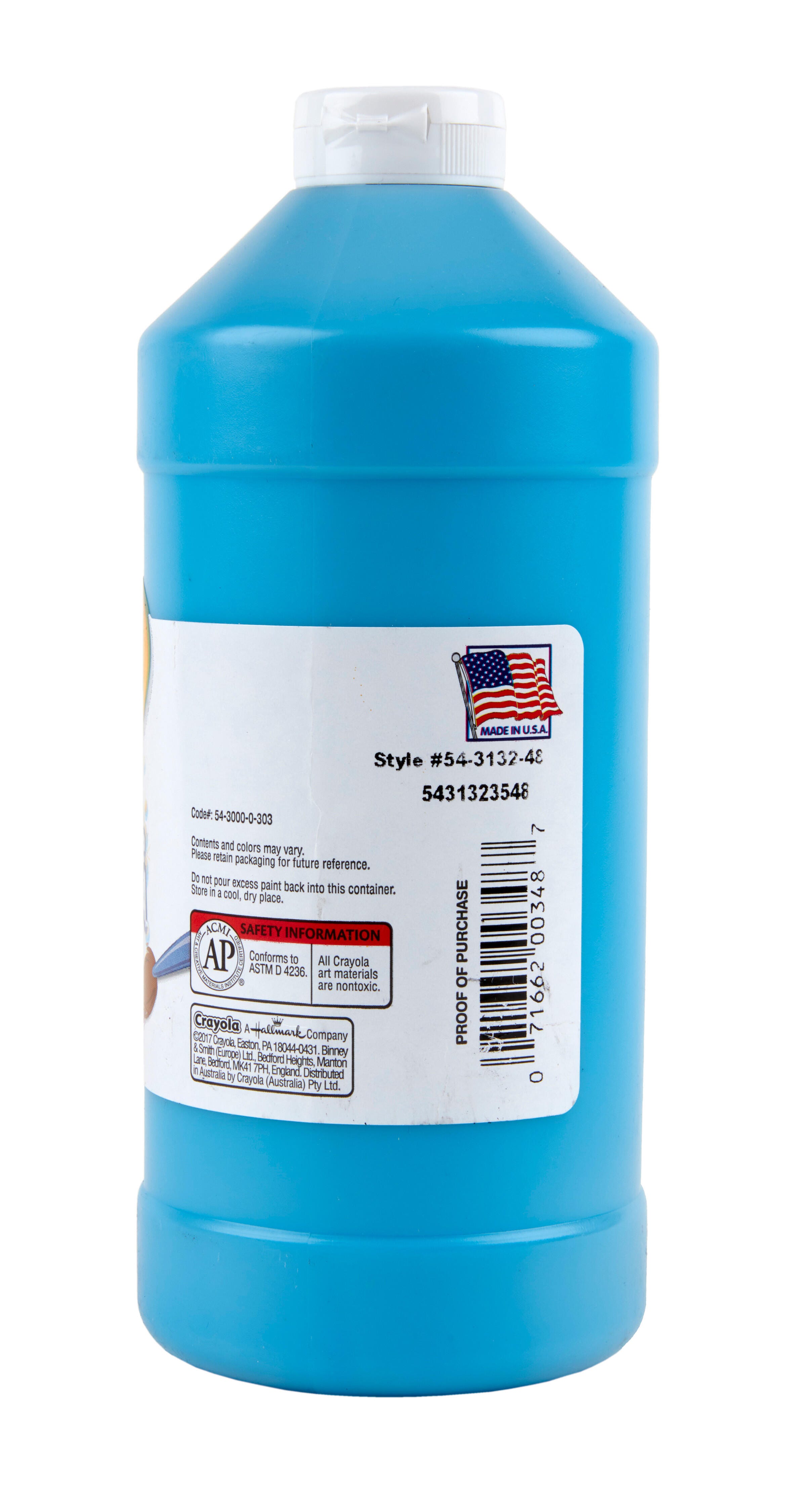 Add a splash of color to art fun anywhere with Crayola Artistia II Washable Tempera Paint. The water-based paint has a creamy consistency that provides good opacity and maximum coverage over newspaper, cardboard, papier mache, traditional paper, and beyond. This bright turquoise paint can be used on almost any surface, providing a versatile craft solution for class projects, at-home creativity, and arts and crafts activities. The versatile paint is also great for teaching color theory, color mixing, and more.