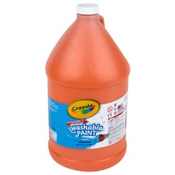 Enhance any artwork with high-quality and vibrant Crayola Washable Paint! The paint's thick, creamy consistency provides rich color and an opaque covering on most surfaces. Plus, this child-friendly paint is easily washed from skin and almost all clothing. This bright orange paint comes in a 1 gallon plastic jug with a screw lid so it is easy to pour—great for large groups or big projects in the classroom, childcare center, or home.Features