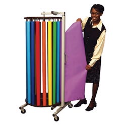Pacon Fadeless Rotary Rack Dispenser measuring 48 inch x 50 feet comes with 20 fadeless rolls in assorted colors. Rotary rack with 4 sturdy casters has a safe cutter bar and no sharp edges that quickly and easily dispenses the paper rolls.Features
