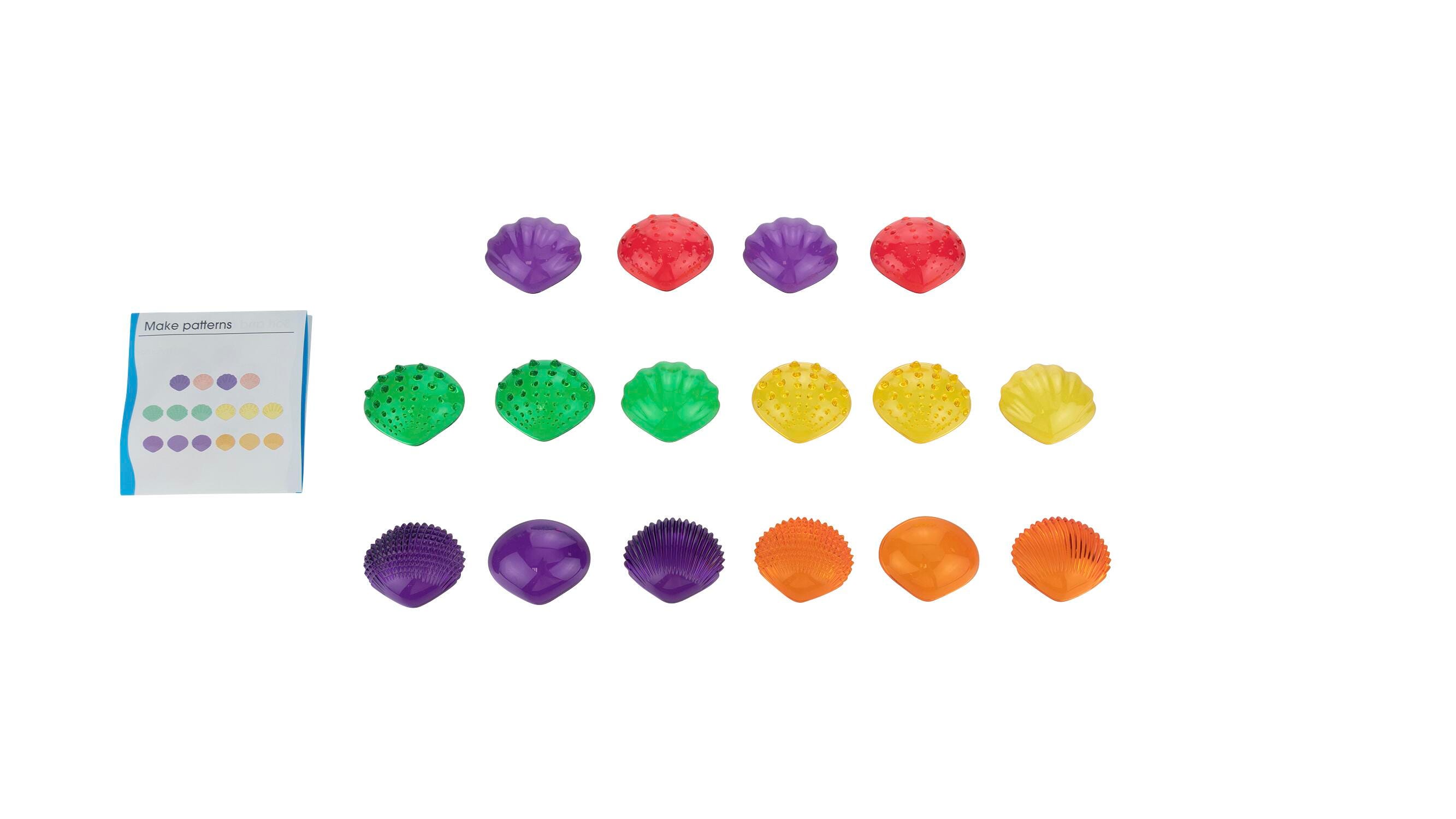 - 72 Seashell-Shaped Pieces in 6 Different Transparent Colors (Red, Yellow, Orange, Green, Blue and Purple) and 6 Different Textures