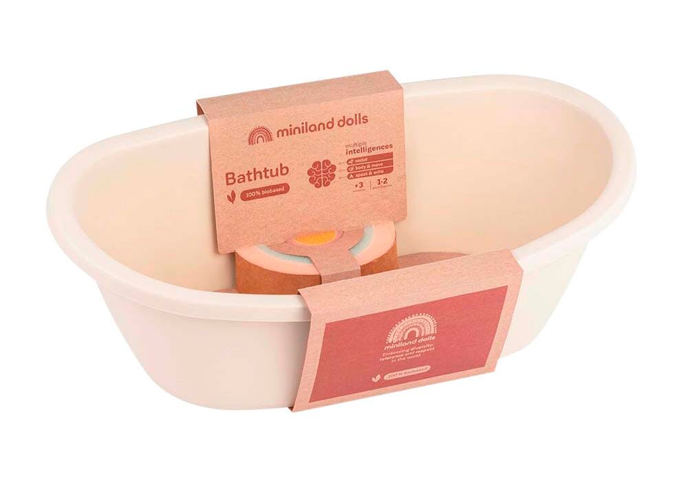 Rub a dub dub! This bathtub is built to give your MIniland Dolls a relaxing bath, rainbow sponge included. Fits all Miniland doll models. Made with environmentally conscious materials.
