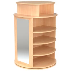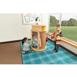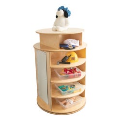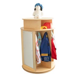 Childcraft® Dress-Up Carousel Storage offers a space-saving, interactive way to store all your costume and dress-up essentials. Designed with young learners in mind, this rotating closet features two mirrored sides, two cubby compartments with six aluminum hooks for hanging clothes, and four additional cubby shelves to store accessories like hats, scarves, and shoes. The top also includes two compartments for extra storage. Dress-up clothes storage helps keep playrooms organized and is great for classroom or home use. Comes fully assembled. Measures 29-1/2 W x 29-1/2 D x 42 H inches. Each shelf can hold 2 storage trays sized 10 W x 13 D x 5 H inches or 10 W x 13 D x 3 H inches (sold separately).Features
