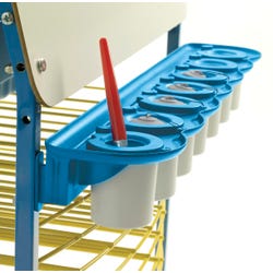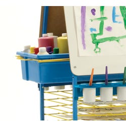 Create the perfect Arts and Crafts station! This collaborative and creative sensory station is the perfect addition to primary classrooms. Features 2 height-adjustable 27 x 24-inch dry-erase painting surfaces, 10 built-in drying racks, 1 sliding really big tub, apron hooks, large art paper clips, and 2 removable paint trays with 7 paint pots and spill-proof caps. Four 2-inch locking casters included for mobility. Tub measures 13-1/2 W x 25 D x 6 H inches. Frame measures 27-1/2 W x 29-1/2 D x 51 H inches.Features