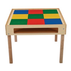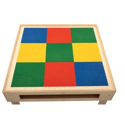 Childcraft® Block Table with Standard Grid Top combines a spacious building grid with accessible storage to inspire endless imaginative play. The sturdy wooden construction ensures durability in classrooms, daycare centers, and playrooms, while the colorful grid top adds a fun, interactive element. Four open compartments under the activity table provide plenty of space to store building bricks and other supplies, making cleanup a breeze. Compatible with standard Lego Building Bricks and similar blocks (bricks sold separately), this blocks table is perfect for group play or individual exploration. Grid colors may vary. The building table measures 32-1/4 W x 32-1/4 D x 24-3/16 H inches, providing a spacious grid surface for creative play.Features
