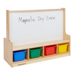 Encourage classroom collaboration with this versatile dual-sided activity center featuring a preschool building block grid, whiteboard, and colored tray storage.