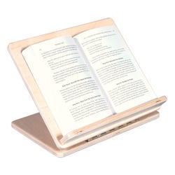 The Abilitations BookBuddy is adjustable to 4 different angles: 44.3, 42.3, 40.4 and 38.5 degrees. This sturdy, wooden easel folds to book size for easy portability and has a lip at the bottom for holding materials in place. When folded, it is 2-1/2 inches thick. Measures 9 L x 12 W inches.Features