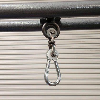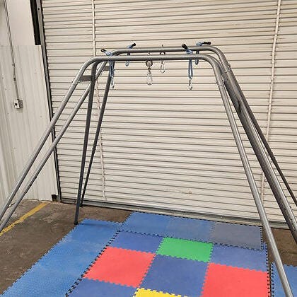Description The HPSI Swing Frame can accommodate any seat with a hook or loop at the end of its rope or chain. Frame was designed for easy portability and features one-piece legs, making it a more sturdy option. Frame stands 7-1/2 feet high and has a baked-on powder-coated finish for indoor and outdoor use. Requires only 8-1/2 feet x 8-1/2 feet of floor or yard space. Provides smooth-turning with 360 degree swivel for spinning. Sets up and knocks down in minutes. Features rubber tipped feet and 2 rope swing hangers; no cross bars to trip over. Innovative rope swing hangers have a lifetime warranty and provide a quiet and smooth swinging experience. Fits in almost any room; requires 7 feet 10 inches for the height and 10 x 16 feet for safe swinging; 16 feet is the front to back dimension. Universal swivel has a 1,780 pound working load with a weight capacity of 375 pounds. Swing not included.Features Portable, freestanding swing frame—no ceiling installation needed Durable steel frame supports various therapy and sensory swings Easy to set up, take down, and transport Ideal for schools, therapy clinics, or at-home use Supports up to 250 lbs Use indoors or outdoors (on flat surfaces) Includes: 1 Portable steel swing frame 2 Support legs and crossbar 1 Height-adjustable swing suspension kit Assembly tools and hardware User manual with setup instructions