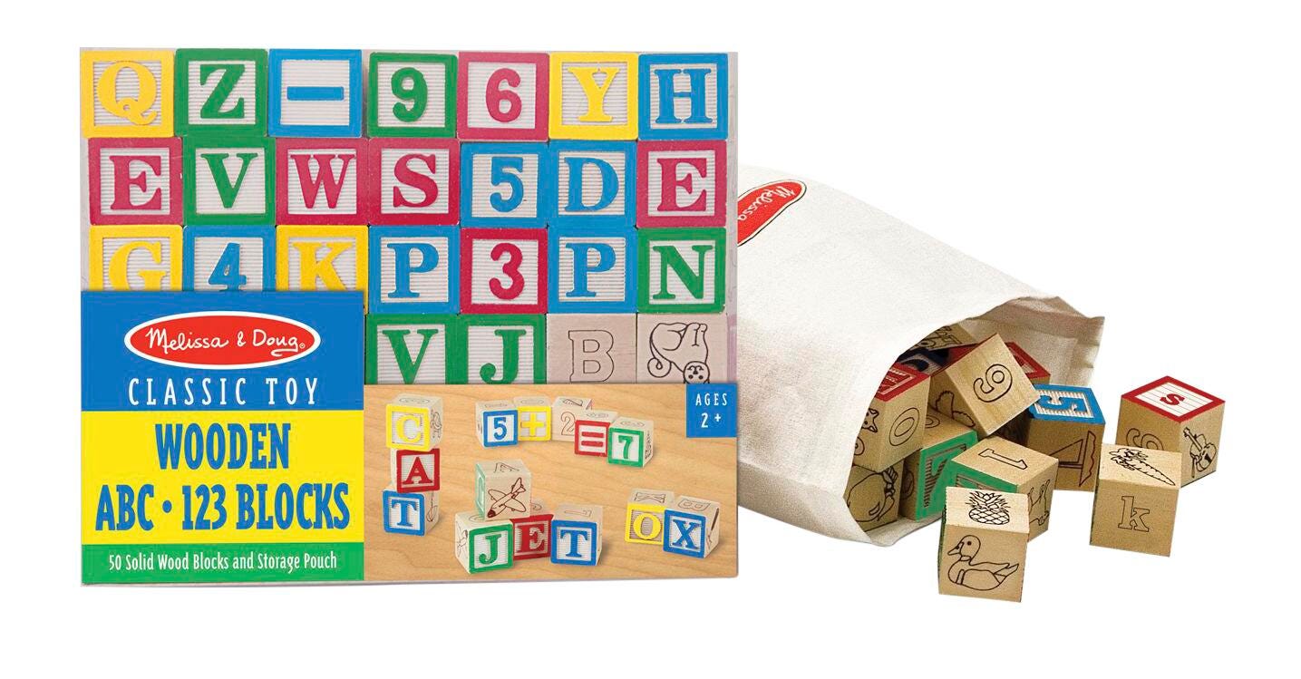 Melissa & Doug Traditional ABC/123 Blocks Set, 50 Pieces