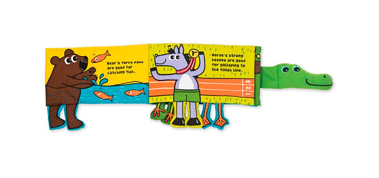Crocodile can’t find his fee! Turn the pages to find out whose feet are down below – and enjoy Crocodile’s fancy footwork! Packed with low-tech, high-impact novelties, and durably constructed to last through story time, play time, and the washing machine, too!