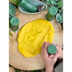 Inspire tactile play and STEM-inspired exploration with dinosaur stamps and rollers. These rollers offer a creative way for children to explore the historical natural world through tactile play, using stamps and rollers to explore these now-extinct creatures and their habitats. Roll into play dough or clay and stamp to create hands-on art projects that mimic a time since passed. From the easily identifiable Tyrannosaurus Rex to the less common coelacanth fish, children will have fun learning and identifying through stamping and rolling. Children can experiment using different amounts of pressure and rolling in different ways. Each roller measures approximately 3 L x 1-1/4 D inches. Perfect for children ages two and older.Features