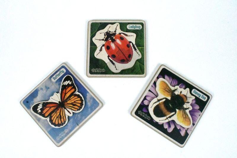 Bring nature indoors without the mess. This BeginAgain's Ladybug Garden Pals Puzzle introduces your young ones to the wonders of the garden with this five-piece puzzle designed for young hands to grasp and place. This puzzle allows children to explore shape recognition and color identification while encouraging problem-solving and confidence through self-guided play. This delightful wooden puzzle is designed for toddlers and children aged 2 and up.