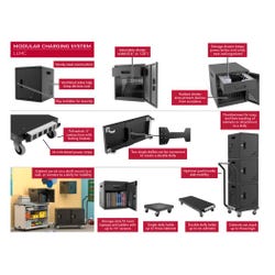 This versatile and ingeniously designed modular charging cart lets you create the perfect mobile or fixed-location solution for charging, storing, and securing tablets and laptops. At the heart of this innovative system is our newly designed 10-device modular charging cabinet. Sized to accommodate most tablets and laptops with up to a 13-inch screen, it can be placed on a shelf, mounted to a wall, or stacked up to three high on our proprietary modular dolly. Since the tool-free thumbscrew attachments make it a breeze to connect the cabinets to both a dolly and other cabinets, you can easily adapt and expand your system as your charging and storage needs evolve. This bundle includes two modular charging cabinets and one single dolly.