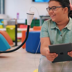 Inspire engagement and make every lesson a multilingual, multi-sensory learning experience with the Muzo Juice Bot Aux Wireless Charging Unit. This unique, robot-shaped character provides wireless power and an integrated speaker, designed to bring a sense of playfulness and a fantastic point of focus to any classroom. With the power of audio, Juice Bot Aux can engage children's creative minds with music, soundscapes from around the world, and active listening exercises, inviting them to listen and imagine. Available in several hand and eye colors. Please select the option that fits your space best when ordering. Measures 11-3/4 W x 11-3/4 D x 33-1/2 H inches.Features
