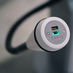 - Flexible, user-centered design includes flexi-arms bend and twist for multidirectional power access