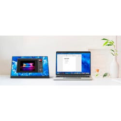 With SideTrak, you can easily work with dual screens whether you’re in the office, at a coffee shop, on the couch, or at the airport. The SideTrak portable monitor for laptops is slim, lightweight, and easily connects to a laptop with included cables. This touchscreen version adds tablet-like convenience and versatility. Since no drivers are required, setup is fast and easy; simply plug in and get to work!Features