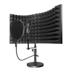 (1) Folding Sound Isolation Shield: Makes clean, controlled, and noise free recordings, reducing unwanted room noise. Compact, portable, lightweight foldable design. Includes stand and base for the isolation shield.