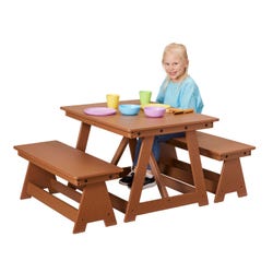 Encourage children to spread out, learn, relax, and enjoy nature with this outdoor table and benches set. For the larger bench and table set, see item 2152190.