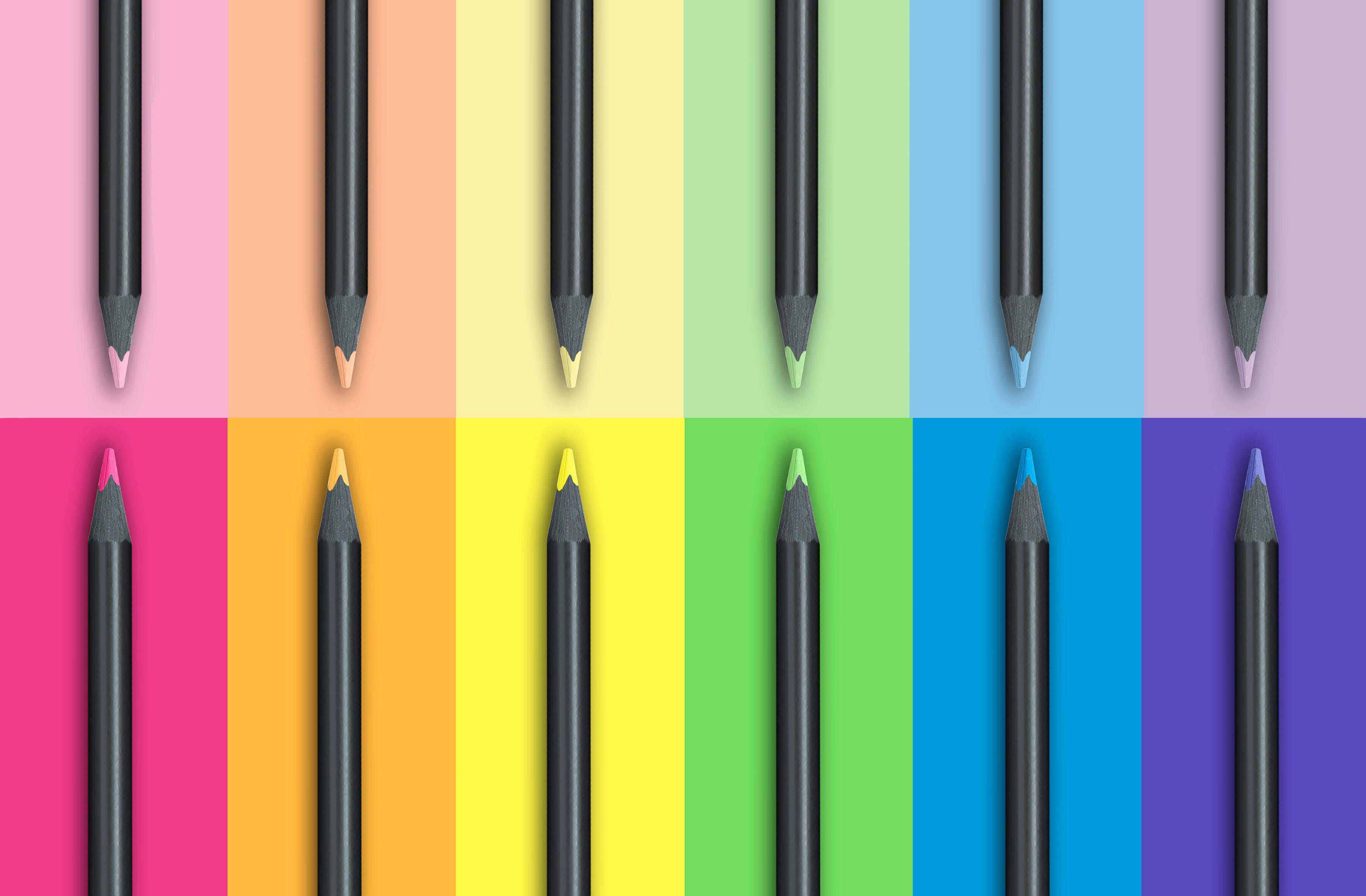 The Neon and Pastel Black Edition Color Pencils from Faber-Castell deliver vivid color with a sleek black design. These art pencils have super soft, highly pigmented cores for smooth laydown and opaque color on light, colored, and dark paper. The colored pencils have an ergonomic triangular shape that facilitates proper grip and reduces hand fatigue during long drawing or writing sessions. They come conveniently packaged in a cardboard box with a fold-out pencil holder and make a great addition to any collection of art supplies. This set includes 12 colored pencils, 1 each of the following colors: 6 Neon and 6 Pastel Black Edition Pencils #790 Pastel Pink, #791 Pastel Orange, #789 Pastel Yellow, #794 Pastel Green, #793 Pastel Blue, #792 Pastel Purple, #797 Neon Pink, #796 Neon Orange, #795 Neon Yellow, #799 Neon Green, #798 Neon Blue, and #800 Neon Purple.Features