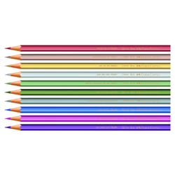 This School Pack of Metallic Colored EcoPencils from Faber-Castell is perfect for creating shimmering artistic expressions with the whole class. These EcoPencils deliver vibrant pigments with dazzling metallic effects to add another level to any arts and crafts project. A special secure-all bonding process glues the cores to the entire length of the pencil and ensures break resistance, easy sharpening, and point retention. The durable pencils offer smooth, consistent marks that can be blended to create custom colors that shine. This pack contains 24 sets of 10 pre-sharpened colored pencils, for a total of 240 pencils. Each set comes packaged in its own box and contains 1 each of the following metallic colors: Red, Bronze, Gold, Silver, Mint Green, Green, Turquoise, Blue, Pink and PlumFeatures