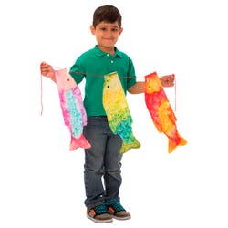 Decorate this Japanese Carp Windsock in bright and vibrant colors while exploring and strengthening your creativity. Use dyes, markers, or paint to add your own creative flair before you let them swim through the sky.