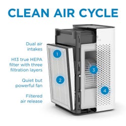 - Each filter uses thre-layer system to catch and remove allergens, pet dander - tested to remove 99.97% of airborne particles from 0.1 to 0.3 microns in size