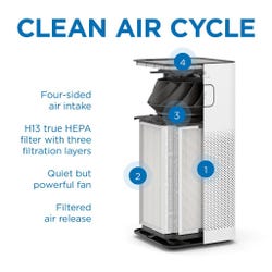 - Each filter uses thre-layer system to catch and remove allergens, pet dander - tested to remove 99.97% of airborne particles from 0.1 to 0.3 microns in size