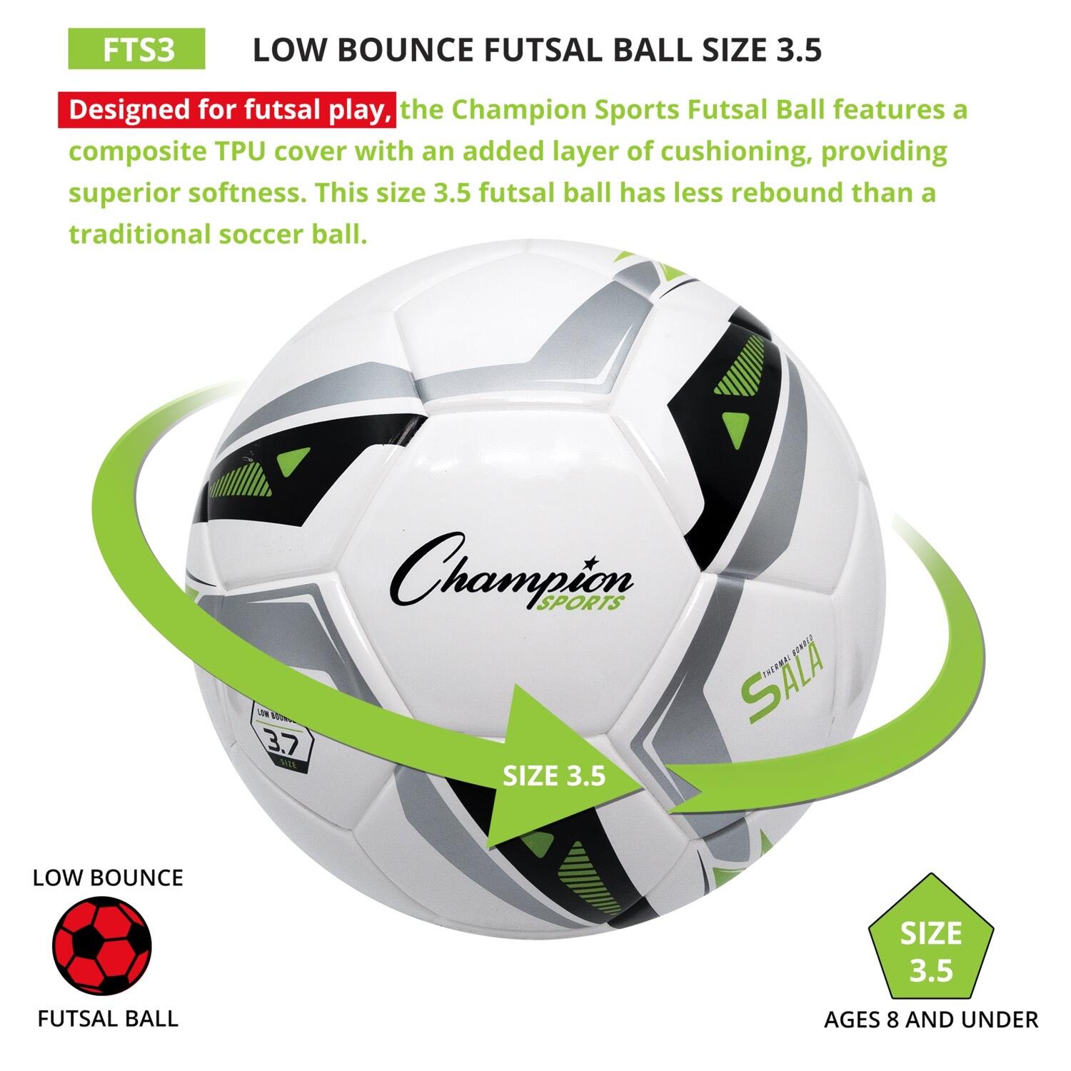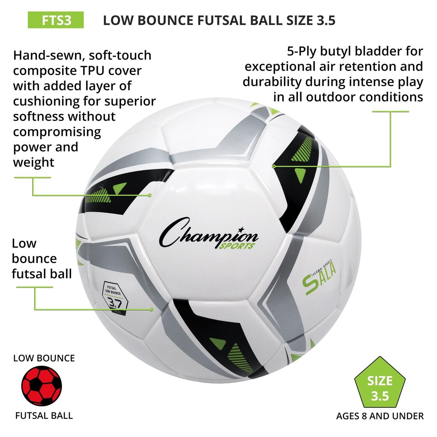 Elevate your indoor game with the Champion Sports Futsal Ball. Engineered specifically for futsal play, this size 3.5 ball features a thermal-bonded, composite TPU cover reinforced with extra cushioning for a premium, soft-touch feel. Designed with the low-bounce characteristics essential for technical play, it performs perfectly on both indoor courts and outdoor surfaces. Plus, the high-performance 5-ply butyl bladder ensures it keeps its shape and air pressure, game after game.