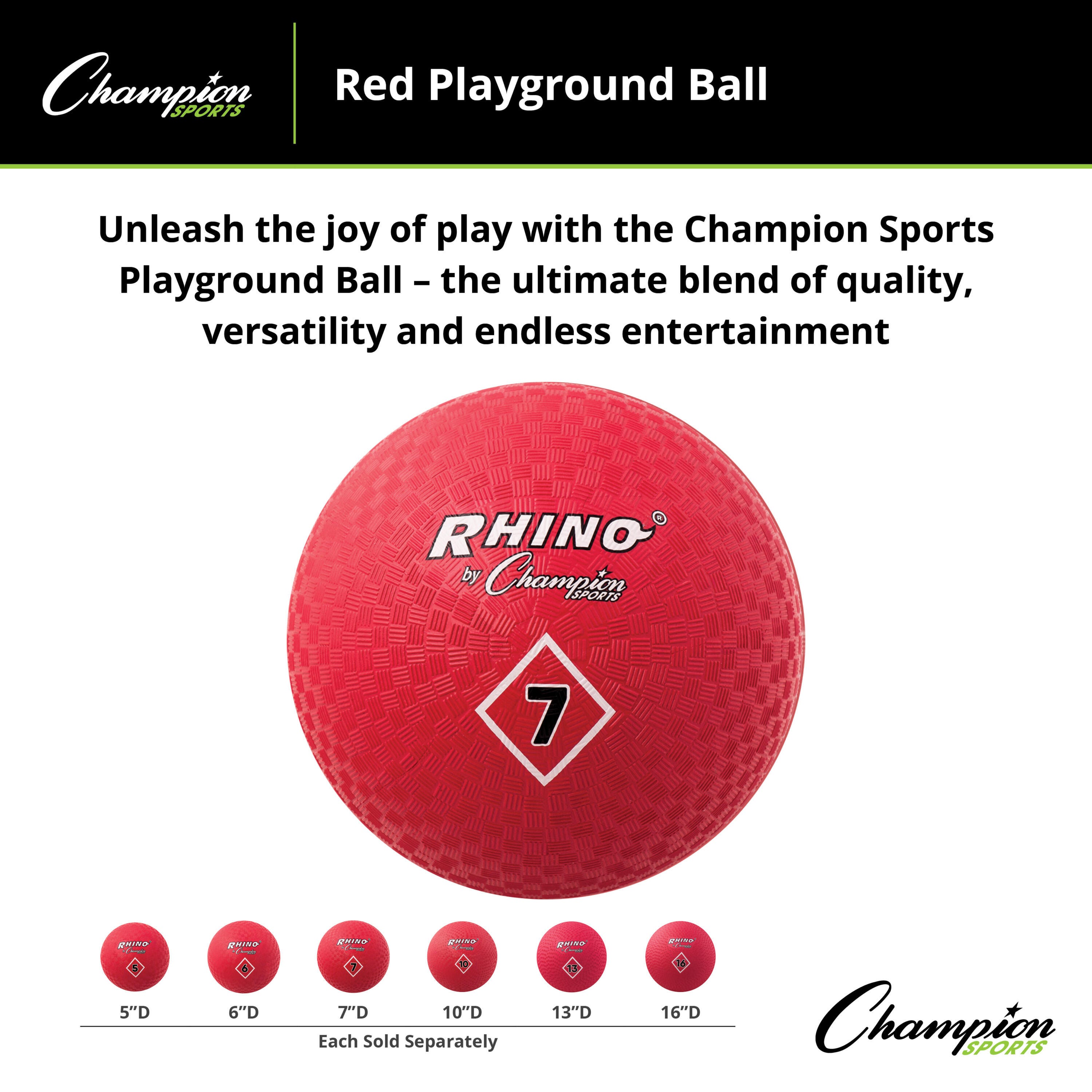 Versatile and exceptionally durable, Playground Balls from Champion Sports are designed to withstand heavy daily use. The 2-ply natural rubber cover is nylon-wound for shape retention and consistent bounce, while the textured exterior ensures a secure grip for students of all ages. Ideal for kickball, catch, basketball, and general recess activities. The ball measures 7 inches in diameter.