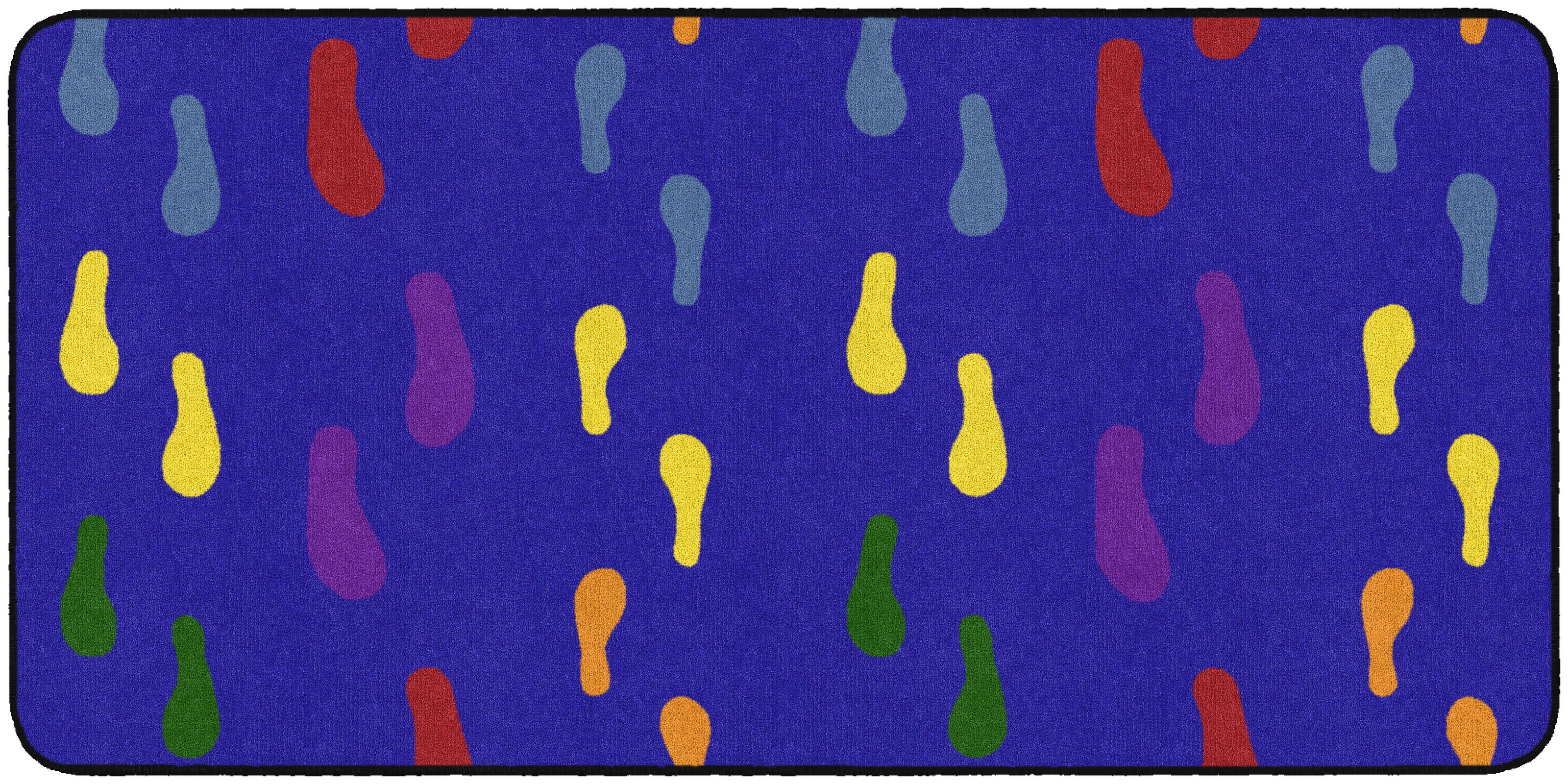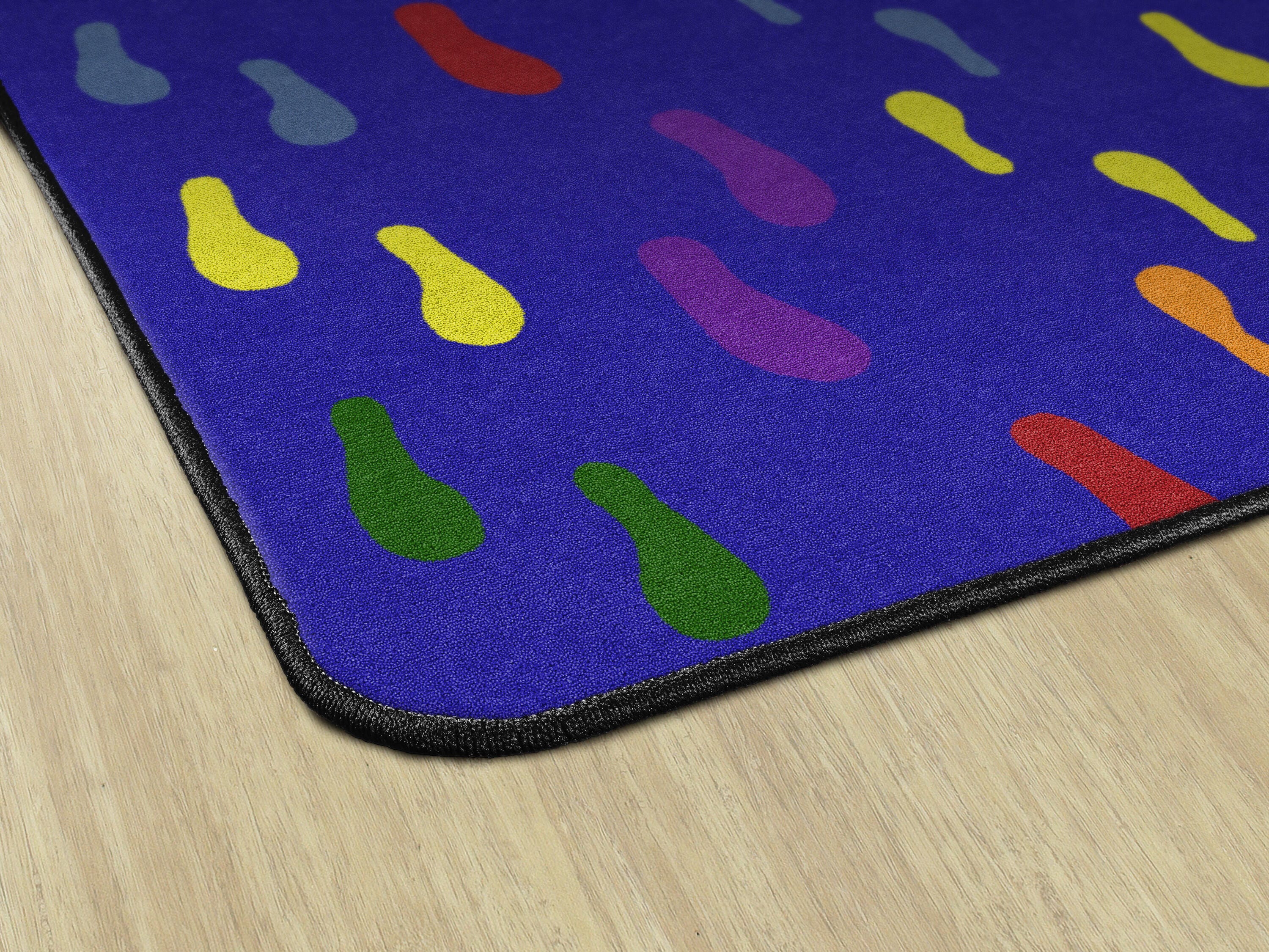 Whether students are skipping, hopping, or tip-toeing through your space, this classroom carpet encourages foot traffic with multicolored footprints decorating its surface. Available in several sizes to match your space.